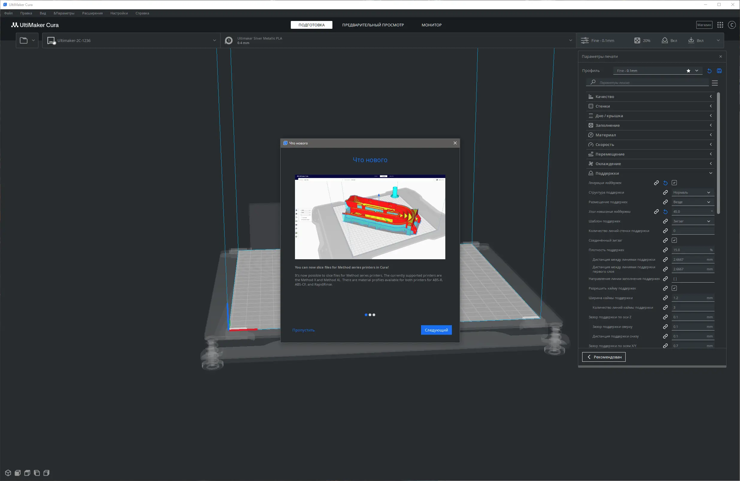 - После завершения установки запустите программу и настройте её под особенности вашего 3D-принтера.