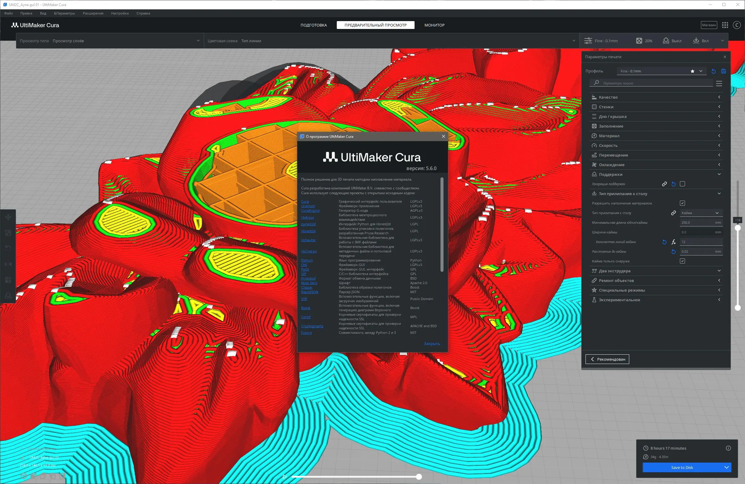 Ultimaker Cura — это популярный и мощный слайсер для 3D-печати, предназначенный для оптимизации процессов создания моделей для различных типов 3D-принтеров. Он идеально подходит как для начинающих домашних пользователей, так и для небольших офисных мастерских благодаря дружелюбному интерфейсу и широкому набору готовых шаблонов.