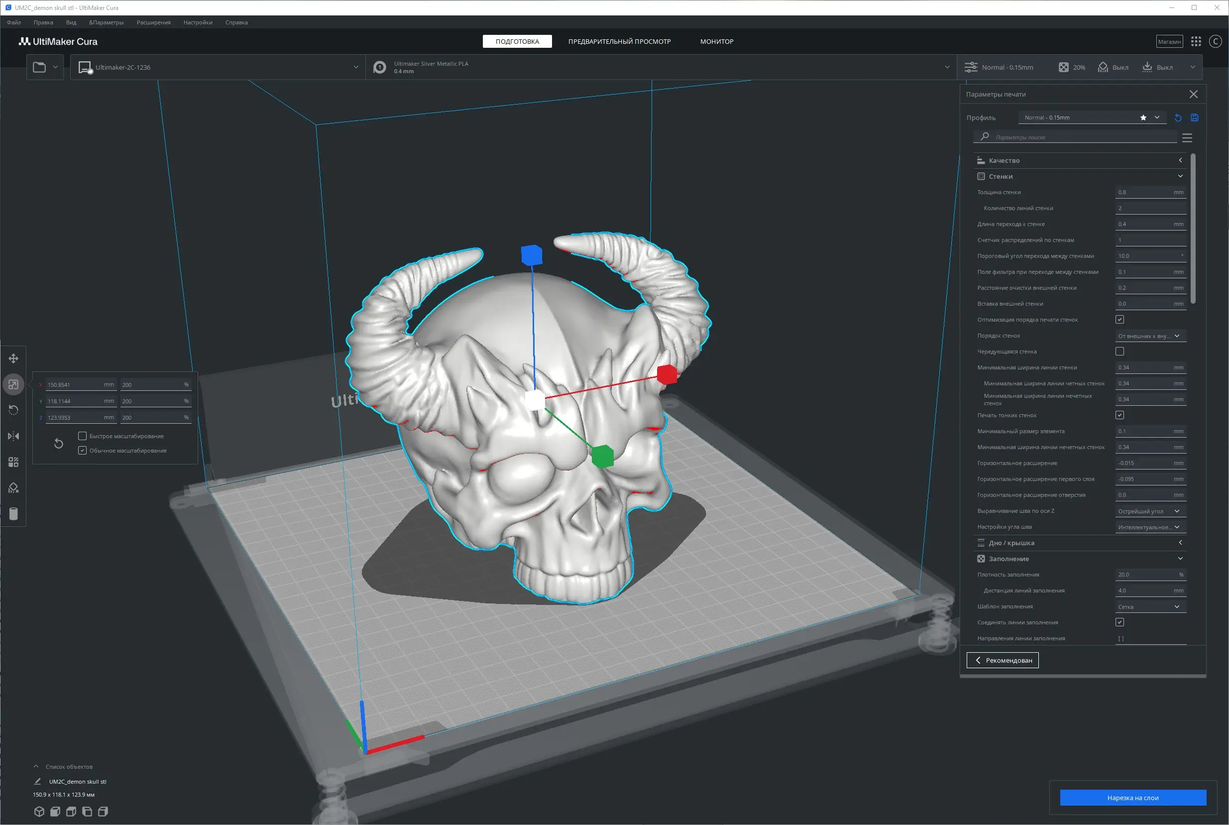 - При необходимости настройте параметры для конкретного 3D принтера и целей печати
