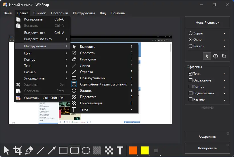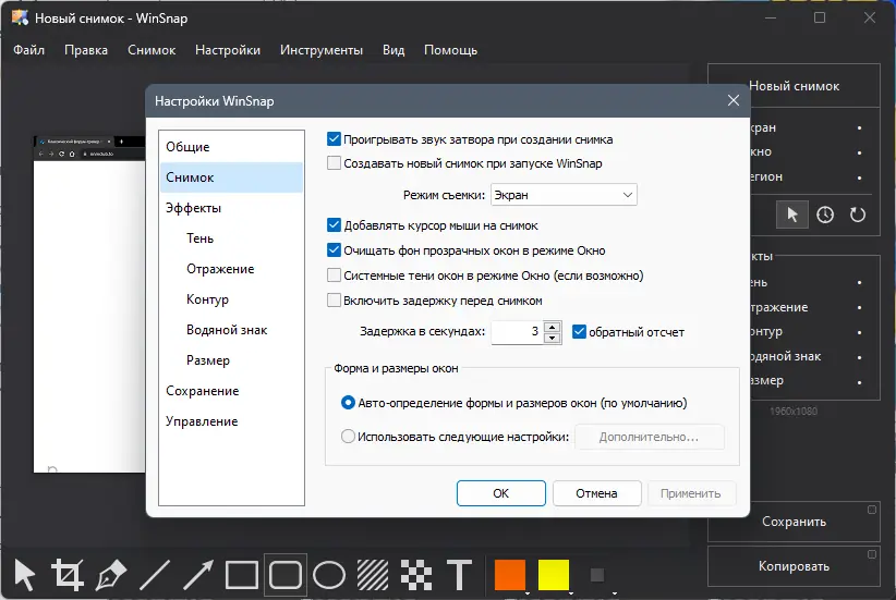WinSnap представляет собой многофункциональное приложение, предназначенное для быстрого захвата изображений с экрана компьютера. Оно позволяет сохранять как стандартные прямоугольные скриншоты, так и снимки нестандартных форм, благодаря поддержке прозрачных окон. Встроенные инструменты редактирования предлагают изменение фона, добавление теней, ретушь, обработку закругленных краев и применение различных эффектов. Среди дополнительных функций — вставка водяных знаков, поворот, масштабирование, изменение цветовой гаммы и размывка, что расширяет возможности для профессиональной обработки изображений. Удобная настройка горячих клавиш способствует автоматизации процессов создания скриншотов, а сохранение в различных форматах — BMP, JPEG, PNG, TIFF, GIF — делает программу универсальным решением для различных задач.