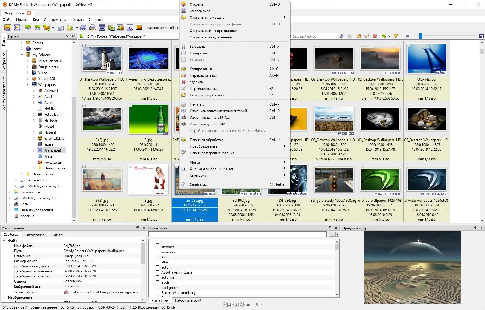 XnViewMP является расширенной версией популярной программы для просмотра и обработки изображений. Этот медиабраузер сочетает в себе возможности просмотрщика, конвертера, редактора и каталогизатора, что делает его незаменимым инструментом для управления графическими файлами. Поддержка более 500 форматов изображений и возможность экспортировать в 50 форматов обеспечивает высокую гибкость при работе с мультимедийными данными. В программе доступны функции пакетной конвертации, редактирования метаданных EXIF, создания скриншотов, загрузки файлов на FTP-сервер, а также настройка эффектов и фильтров. Интерфейс в стиле проводника Windows обеспечивает удобство в использовании, а портативная версия позволяет запускать приложение без установки на любой совместимый ПК.