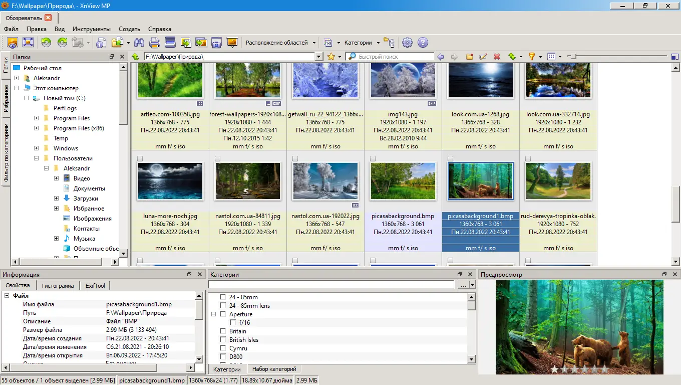 Это мощное многофункциональное приложение, являющееся расширенной версией XnView, предназначенное для удобной работы с графическими файлами. Утилита поддерживает просмотр более 500 различных форматов изображений, а при сохранении — до 50, что делает её универсальным инструментом для обработки медиафайлов. XnViewMP позволяет не только просматривать и конвертировать изображения, но и редактировать их, изменяя яркость, контраст, обрезая, поворачивая, применяя различные эффекты и фильтры. Кроме того, программа умеет работать с EXIF-данными, создавать слайд-шоу, делать скриншоты, загружать файлы на FTP-сервера и отправлять их по электронной почте. В интерфейсе реализована система каталогизации и сортировки, которая облегчает управление большими медиабиблиотеками. Инструмент совместим с Windows 7, 8/8.1, 10 и 11 как x32, так и x64 bit архитектур, а также обладает портативной версией для использования без установки.