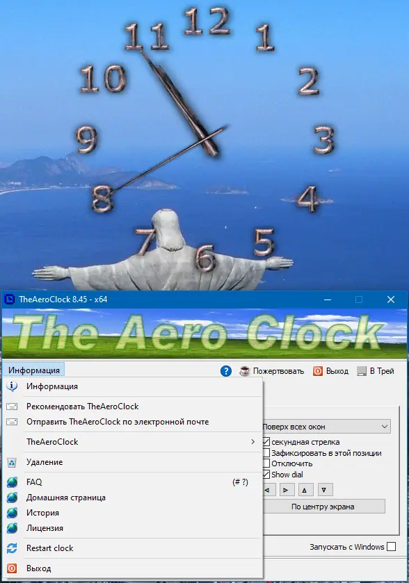 Обратите внимание, что для корректной работы рекомендуется создать или скопировать файл TheAeroClock.ini в рабочую директорию или в папку %APPDATA%/TheAeroClock.