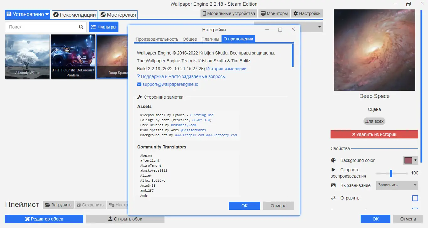 - Интеграция с Steam Workshop для легкого поиска и публикации обоев.