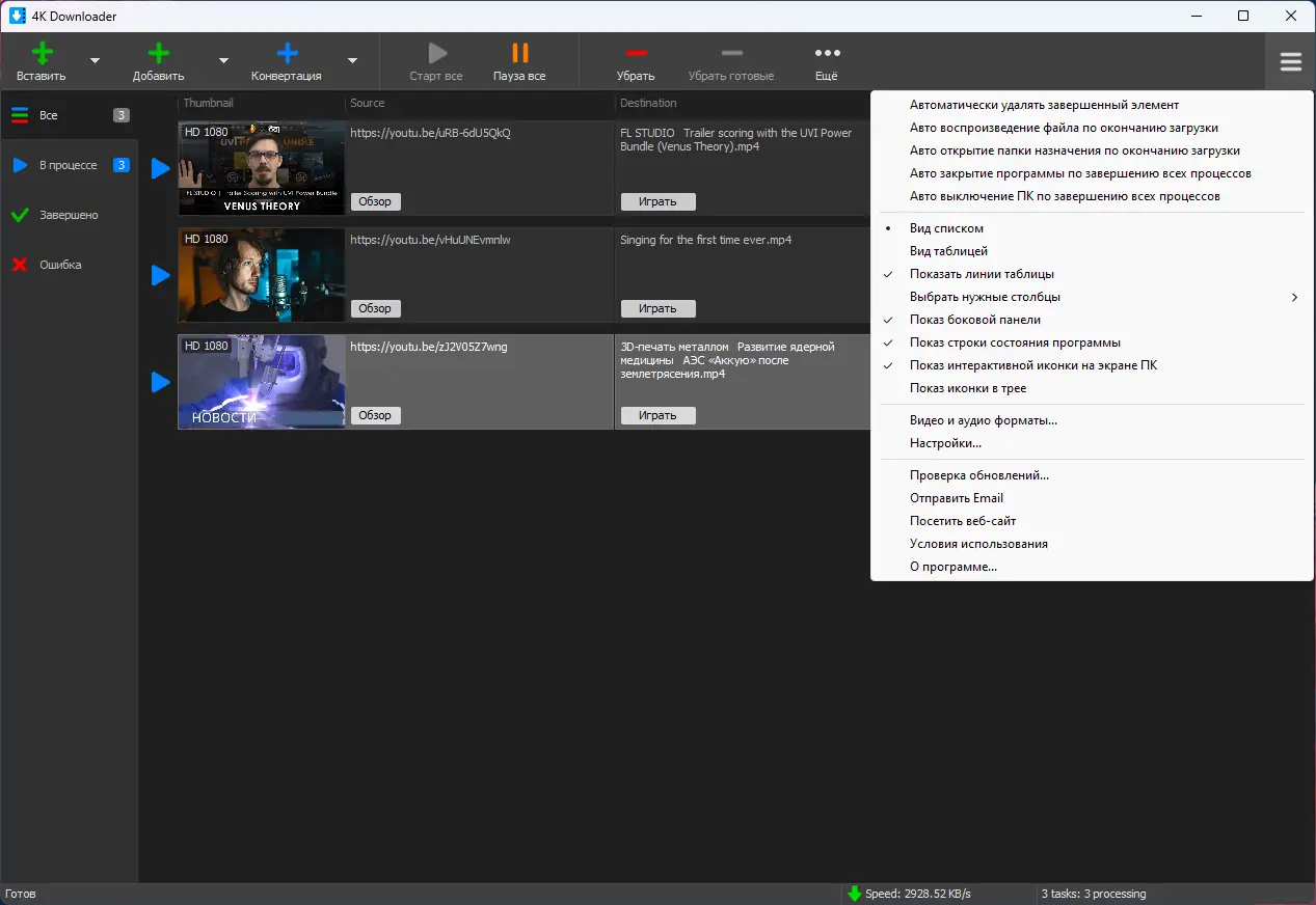 4K Downloader — современная программа для загрузки видео и аудио с популярных интернет-сервисов в формате 4K Ultra HD, которая подходит как для новичков, так и для опытных пользователей.
