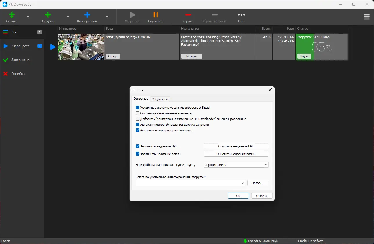 - Запустить программу и настроить предпочитаемые параметры скачивания и форматы файлов.