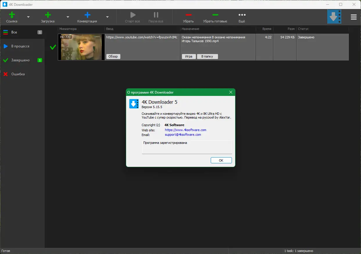 4K Downloader отлично подходит для тех, кто ценит качество видео и простоту в использовании. Программа сочетает в себе эффективность и понятный интерфейс, что делает её популярным выбором среди пользователей, ищущих быстрый способ сохранить видео высокого разрешения.