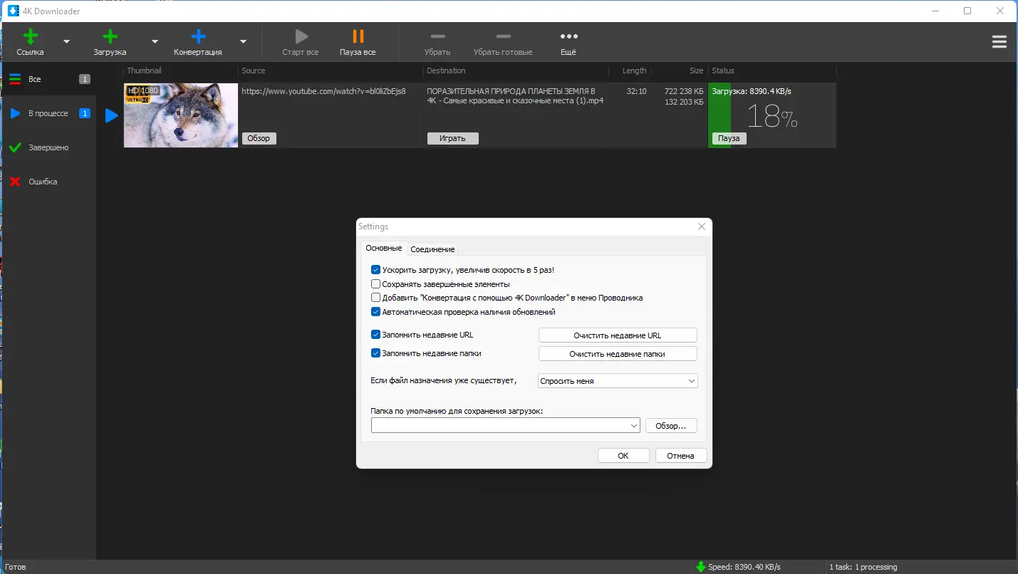 - Поддержка загрузки видео в любом качестве от 240p до 8K UHD 60 FPS.