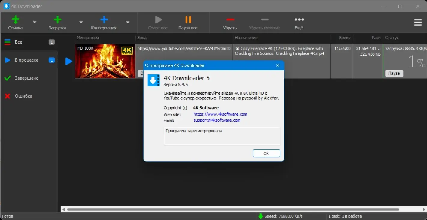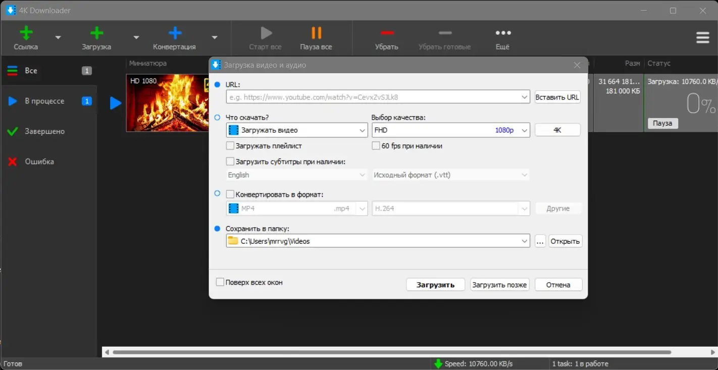 Данная программа обеспечивает быструю и простую загрузку видео и аудио с различных сайтов в высоком разрешении, начиная от 240p и заканчивая 8K UHD 60 FPS. Ее интерфейс современен и интуитивно понятен, что делает работу с приложением максимально комфортной даже для новичков. После копирования ссылки, программа автоматически вставляет её, позволяя выбрать качество и формат сохранения. Также есть возможность добавлять видео в список задач для последующей загрузки, работать с целыми плейлистами и списками воспроизведения. Встроенный плеер и функции преобразования позволяют сразу просматривать или обрабатывать скачанный контент. Поддержка сетевых дисков и мобильных устройств облегчает работу с файлами на разных платформах.