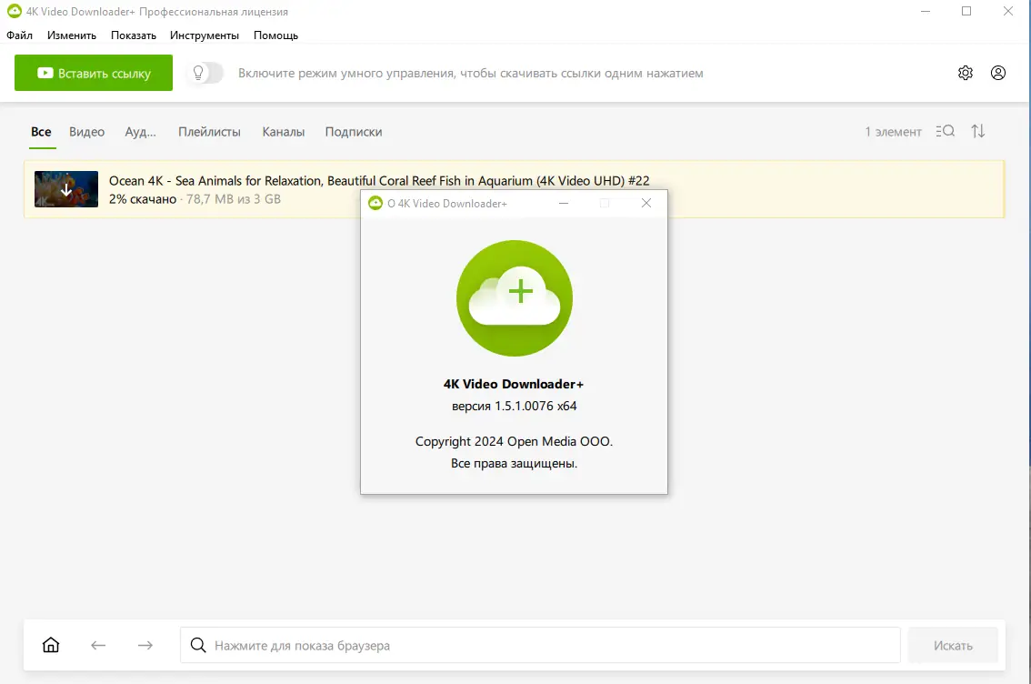 - Откройте программу, вставьте URL видео или плейлиста и начните скачивание.