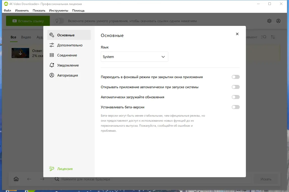 - Настройте параметры прокси-сервера и предпочтительные форматы скачивания.
