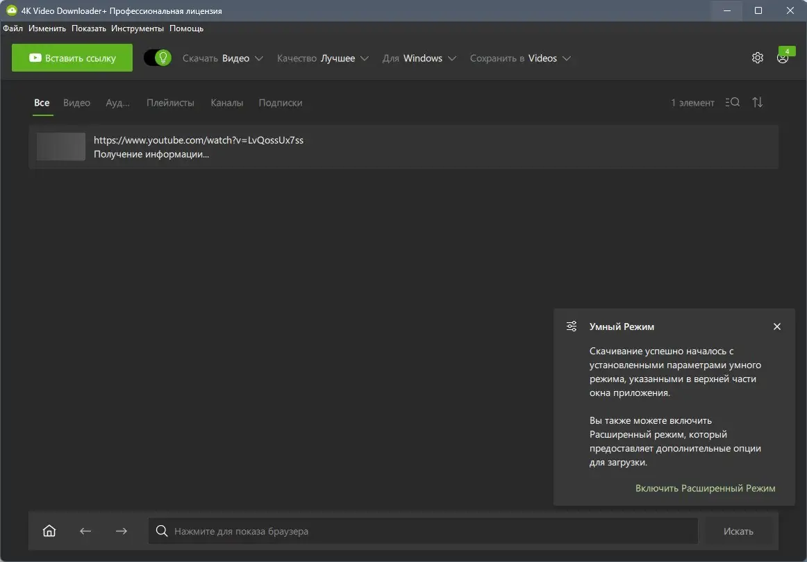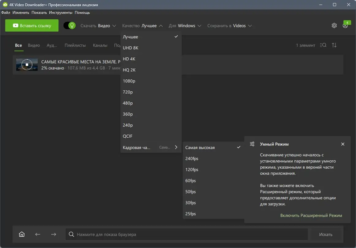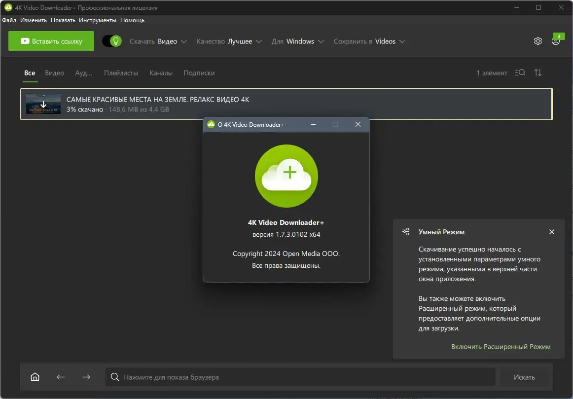 - Функция «Умный режим» для автоматизации процесса скачивания.