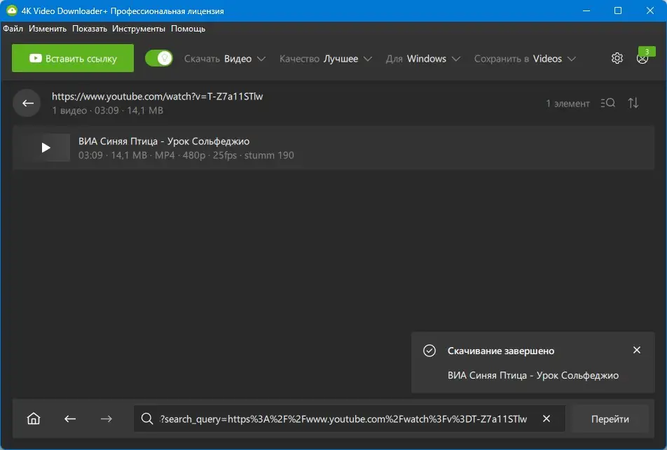 4K Video Downloader — это лаконичный и надежный Youtube downloader, который позволяет скачивать целые каналы, подписываться на обновления, загружать плейлисты, а также импортировать списки ссылок для автоматического скачивания. В отличие от онлайн-сервисов, эта утилита обеспечивает полноценные возможности по сохранению видео, аудио и субтитров со стабильным качеством и высокой скоростью. Работает с файлами в разрешениях до 8K и поддерживает загрузку 3D и 360° видео. Программа совместима с большинством популярных платформ и позволяет сохранять контент прямо в iTunes или на устройство пользователя.