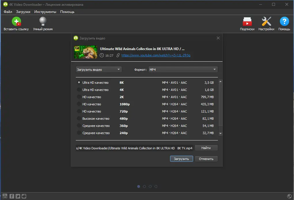 4K Video Downloader позволяет скачивать видео, плейлисты, каналы и субтитры с различных видеохостингов, включая YouTube, Facebook и Vimeo, в разрешении до 8K. Благодаря простому интерфейсу и поддержке нескольких языков, пользоваться программой просто и удобно. Скачать файл можно, скопировав ссылку из браузера и вставив её в программу. Поддержка различных форматов и возможность прямого сохранения в iTunes делают ее универсальным инструментом для менеджмента мультимедийных файлов.