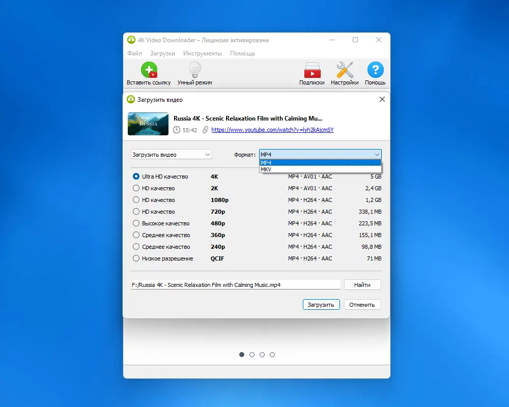- Поддержка скачивания 4K, 8K и видео в HD разрешении