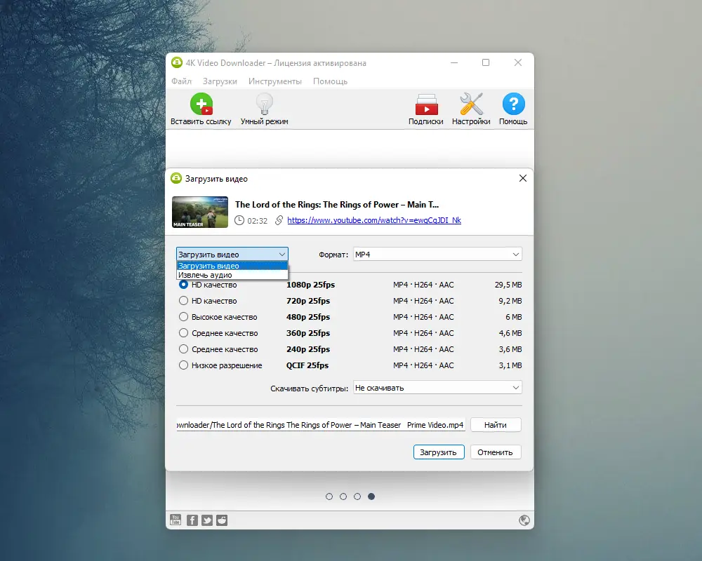 4K Video Downloader — это мощное приложение для скачивания видео, плейлистов, каналов и субтитров с популярных видеосервисов в высоком качестве и разрешении. Программа позволяет сохранять любимые ролики в оффлайн-режиме и обеспечивает удобство использования благодаря простому копированию ссылок из браузера и вставке их в интерфейс программы.