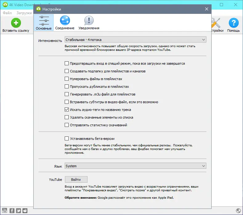 - Скачивание целых YouTube-каналов и плейлистов в различных форматах: MP4, MKV, M4A, MP3, FLV, 3GP.