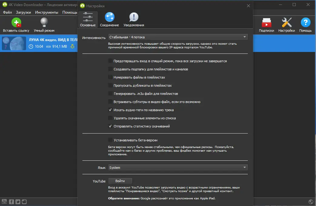 - Для полноценной работы требуется достаточно мощное оборудование, особенно при скачивании 4K и выше.