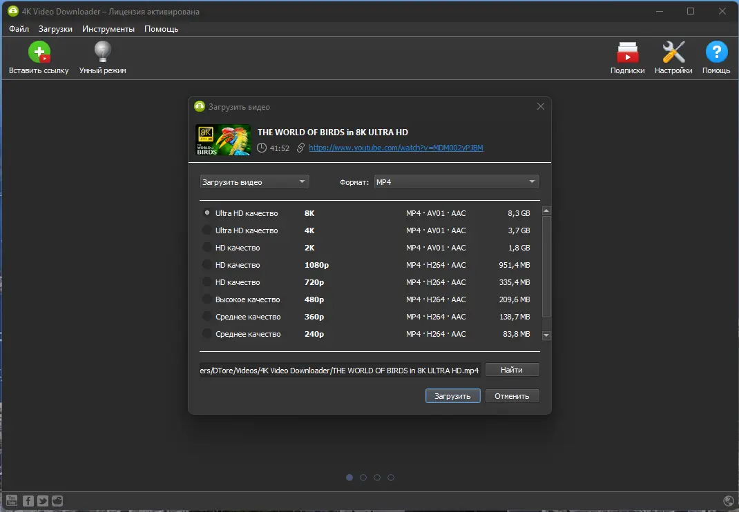 4K Video Downloader — это мощное приложение, которое дает возможность скачивать видео, аудио, плейлисты, каналы и субтитры с YouTube, Facebook, Vimeo и других сайтов в различных форматах и разрешениях. Благодаря интуитивному интерфейсу, процесс загрузки сводится к простому копированию ссылки и нажатию кнопки. Вы сможете смотреть любимые видео в любое время и в любом месте, даже когда вас нет интернет-соединения. Программа поддерживает загрузку в 4K и 8K качестве, что обеспечивает высокое качество воспроизведения на HD-телевизорах и мобильных устройствах.