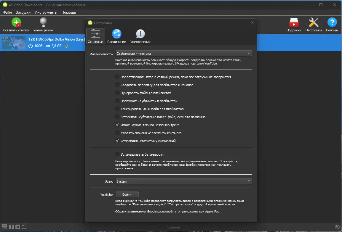 - Запустите программу и настройте параметры по своему усмотрению, в том числе прокси-сервер и предпочтительные форматы.