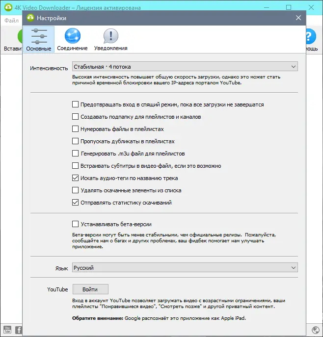 Данная утилита позволяет скачивать целые каналы, подписываться на новые видео внутри приложения, импортировать списки ссылок, а также скачивать плейлисты и отдельные видео в различных форматах и качестве. Благодаря встроенной поддержке загрузки из Vimeo, SoundCloud и других сервисов, программа обеспечивает универсальность и расширенные возможности для работы с мультимедийным контентом. Программа имеет настройки скорости, количества потоков и опций уведомлений, что позволяет адаптировать процесс скачивания под нужды пользователя.
