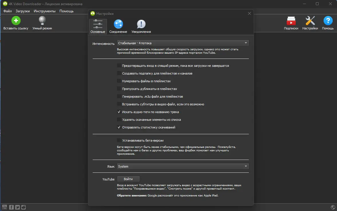 - Многофункциональность — скачивание каналов, подписок, плейлистов, субтитров и аннотаций.