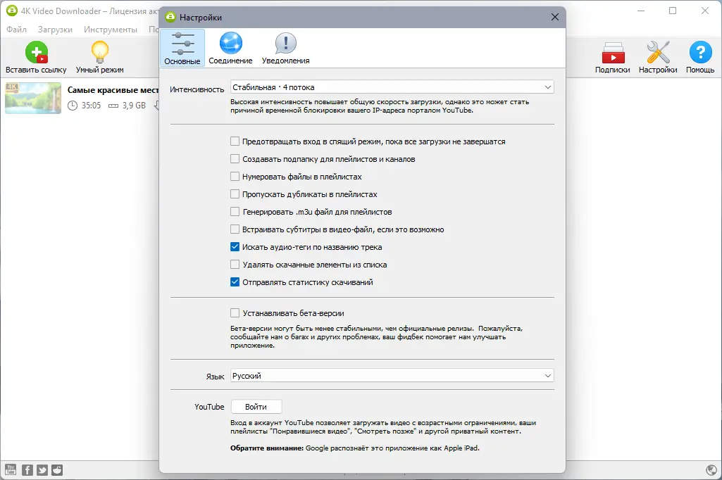Скачивать можно как отдельное видео, так и целые воспроизводимые списки, при этом можно выбрать качество — от HD 720p до 8K. Реализована возможность автоматической загрузки новых видео с подписанных каналов, что удобно для постоянных подписчиков и создателей контента. Встроенные опции уведомлений и настройка потоков делают процесс скачивания гибким и быстрым. Всё это делает утилиту идеальным решением для сохранения видео в офлайн-режиме, без необходимости пользоваться сторонними онлайн-сервисами и порталами.