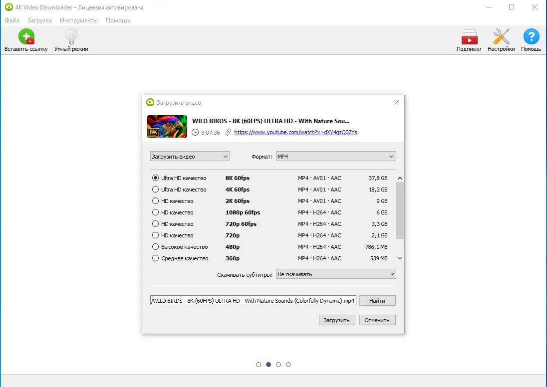 4K Video Downloader позволяет скачивать видео, плейлисты, каналы и субтитры с YouTube, Facebook, Vimeo и других сайтов в высоком разрешении — от HD 720p и 1080p до 4K и 8K. С помощью программы вы можете просматривать свои любимые видео даже оффлайн, просто скопировав ссылку из браузера и вставив её в приложение. Интуитивно понятный интерфейс обеспечивает легкость скачивания, а поддержка всех популярных платформ делает её универсальным инструментом для просмотра и хранения видео- и аудиоконтента.