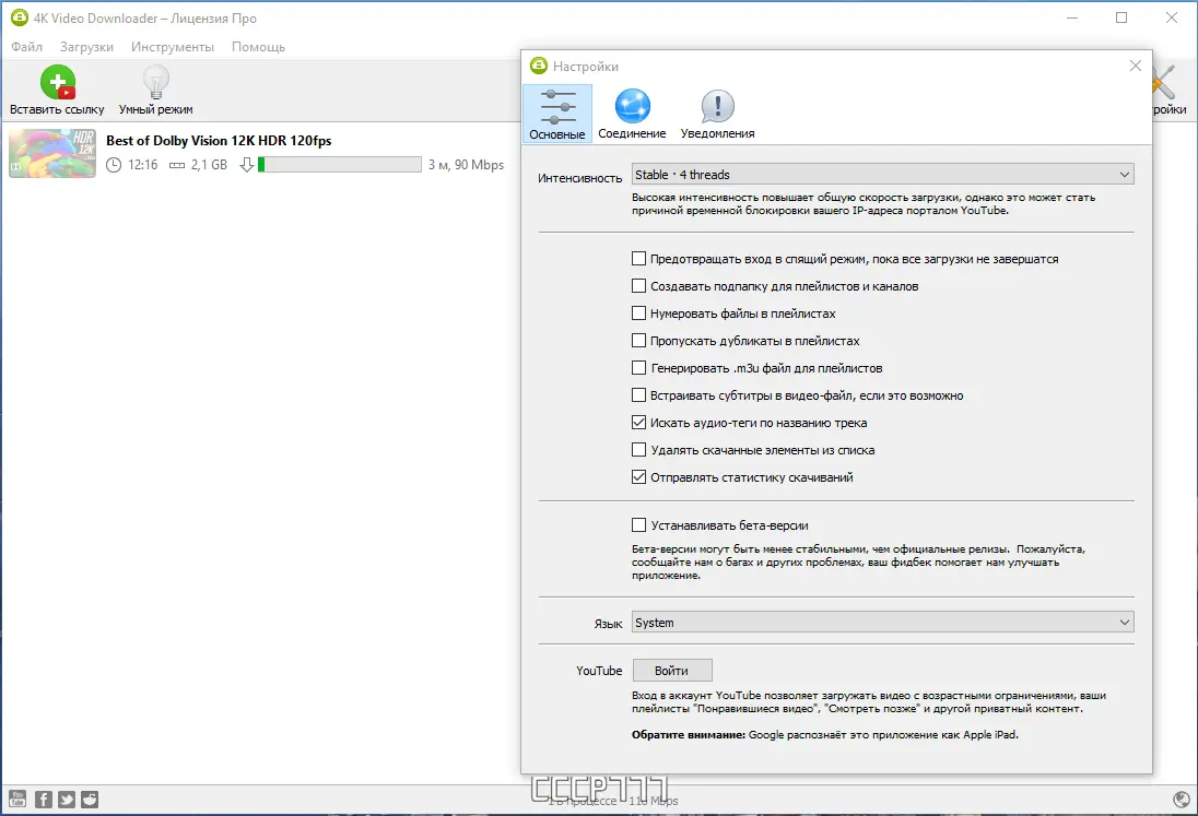 - Тонкая настройка потоков, скорости скачивания и уведомлений;