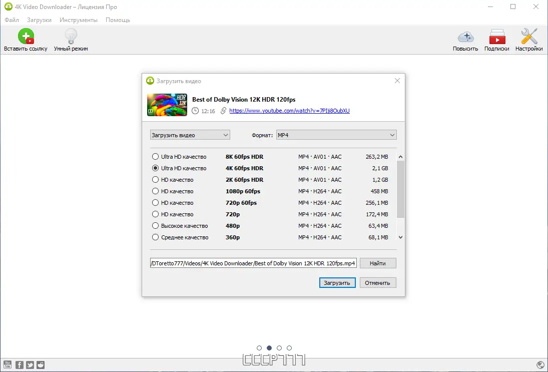 - Высокое качество скачиваемого видео, вплоть до 8K;