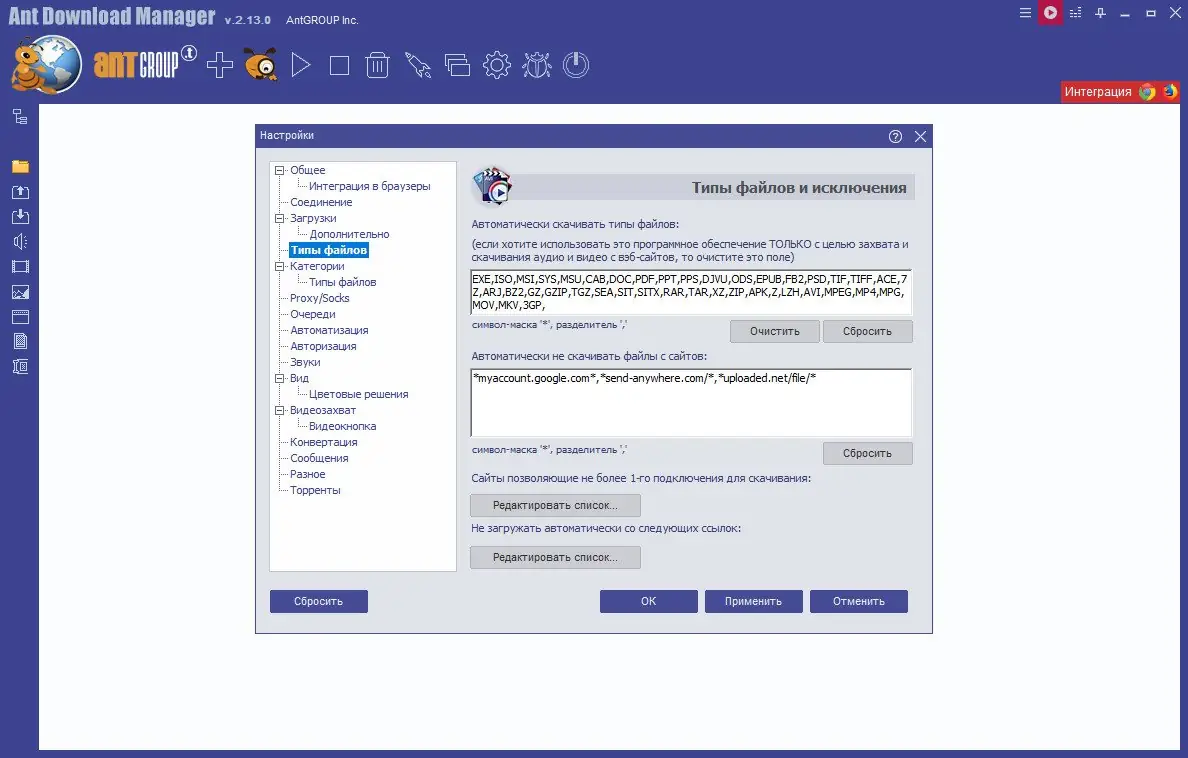 Ant Download Manager — это современный инструмент для загрузки файлов, который значительно ускоряет процесс скачивания за счет многопоточной загрузки и автоматического восстановления прерванных сессий. Он поддерживает работу с различными протоколами HTTP, FTP, HTTPS, FTPS и мультимедиа протоколами вроде HLS, MPEG-DASH, а также P2P через протокол BitTorrent. Программа автоматически захватывает ссылки через расширения браузеров, таких как Chrome, Firefox, Opera и другие, или работает автономно по перетаскиванию ссылок. Встроенный видеограббер позволяет скачивать видео с популярных платформ, а конвертация аудио в MP3, извлечение звуковых дорожек и режиссура видео делают AntDM универсальным инструментом для медиа-обработки.