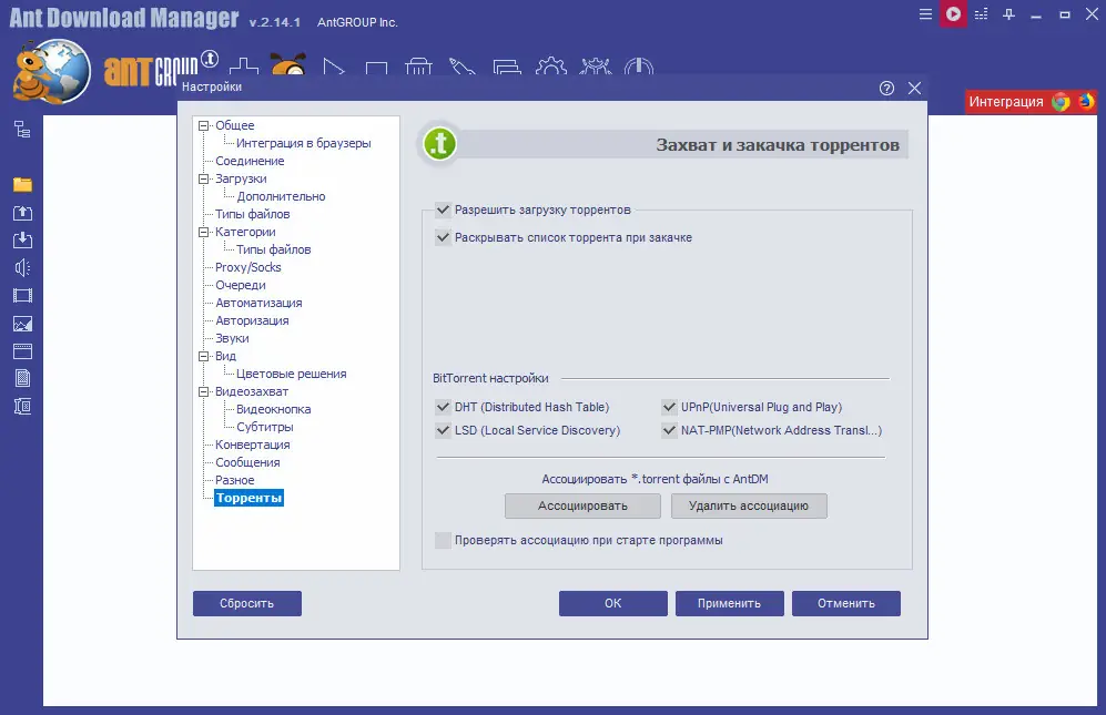 Ant Download Manager — универсальный инструмент для скачивания файлов, который значительно увеличивает скорость загрузки за счет многопоточной работы, автоматического восстановления прерванных загрузок и планирования задач. Удобный графический интерфейс состоит из двух экранов: основной для обычных загрузок и дополнительного с предварительным просмотром видео, что позволяет легко отслеживать процесс. Программа поддерживает работу с прокси-серверами, протоколами HTTP, HTTPS, FTP, FTPS, а также потоковыми мультимедиа протоколами вроде HLS, MPEG-DASH и VIMEO-STREAM. Интеграция с популярными браузерами обеспечивает автоматический захват ссылок, но имеется возможность использования AntDM автономно, перетаскивая ссылки или загружая их вручную. Программа также умеет извлекать музыку из видео, конвертировать аудио в MP3, а встроенный видеоредактор позволяет выполнять базовые редактирования. В версии представлен расширенный функционал по управлению скоростью, приоритетами загрузок, автоматическому удалению выполненных задач и контролю контрольных сумм файлов.