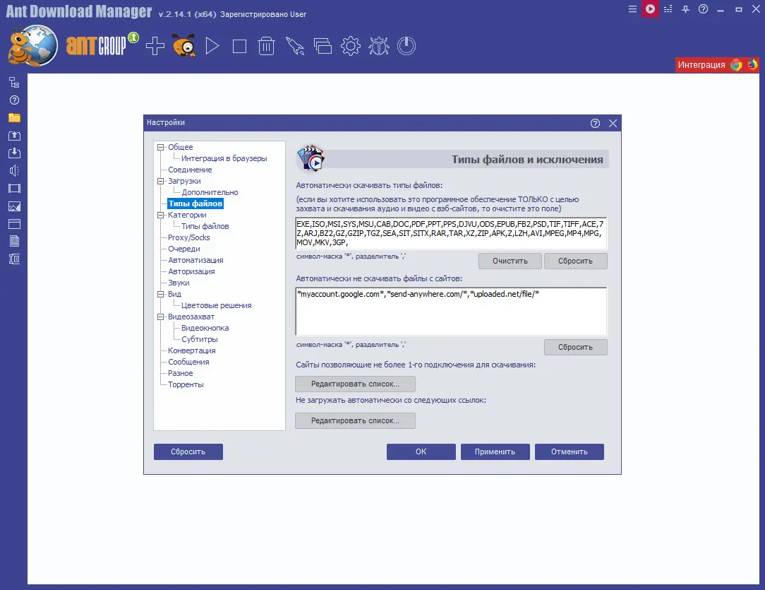 Также AntDM обеспечивает интеграцию с наиболее популярными браузерами и их клонами, такими как Chrome, Firefox, Opera, Vivaldi, Яндекс.Браузер и другие. Это позволяет автоматически захватывать ссылки или перетаскивать файлы для загрузки, а также управлять списками закачек, категориями и историей загрузок. Встроенный видеоредактор, система автоматического обновления и возможность использования портативной версии — всё это делает программу универсальным решением для скачивания любых файлов, от документов и изображений до больших видеофайлов.