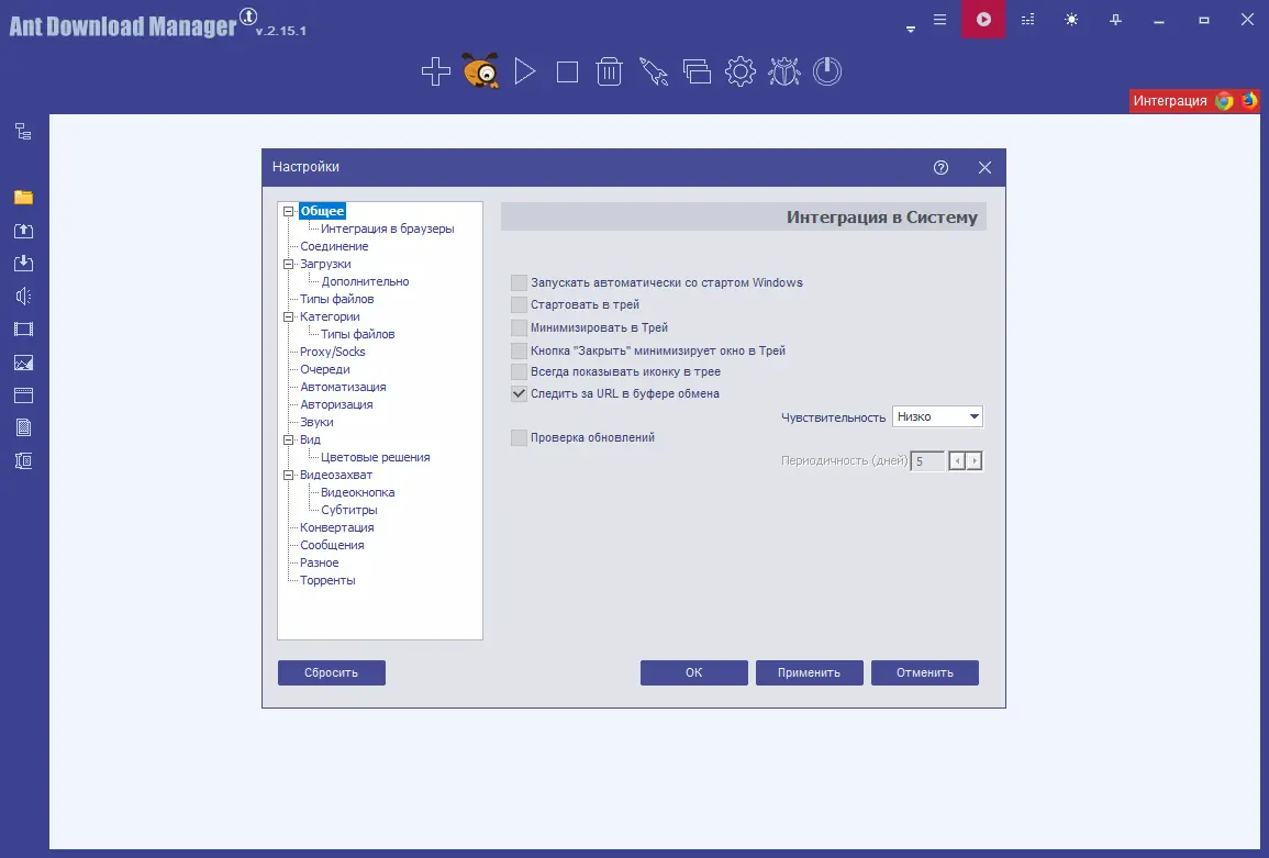 - Интеграция с основными браузерами (на базе Chromium, Firefox, их клонами) для автоматического захвата ссылок и мультимедийных потоков;