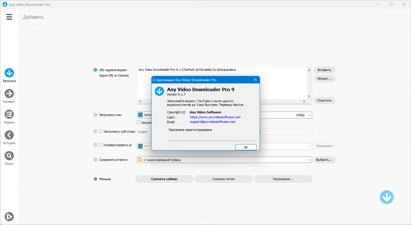 Any Video Downloader Pro — мощное приложение для Windows, позволяющее быстро и легко загружать видео с популярных сайтов обмена видео, таких как YouTube, Facebook и Dailymotion, а также конвертировать и просматривать скачанные файлы.