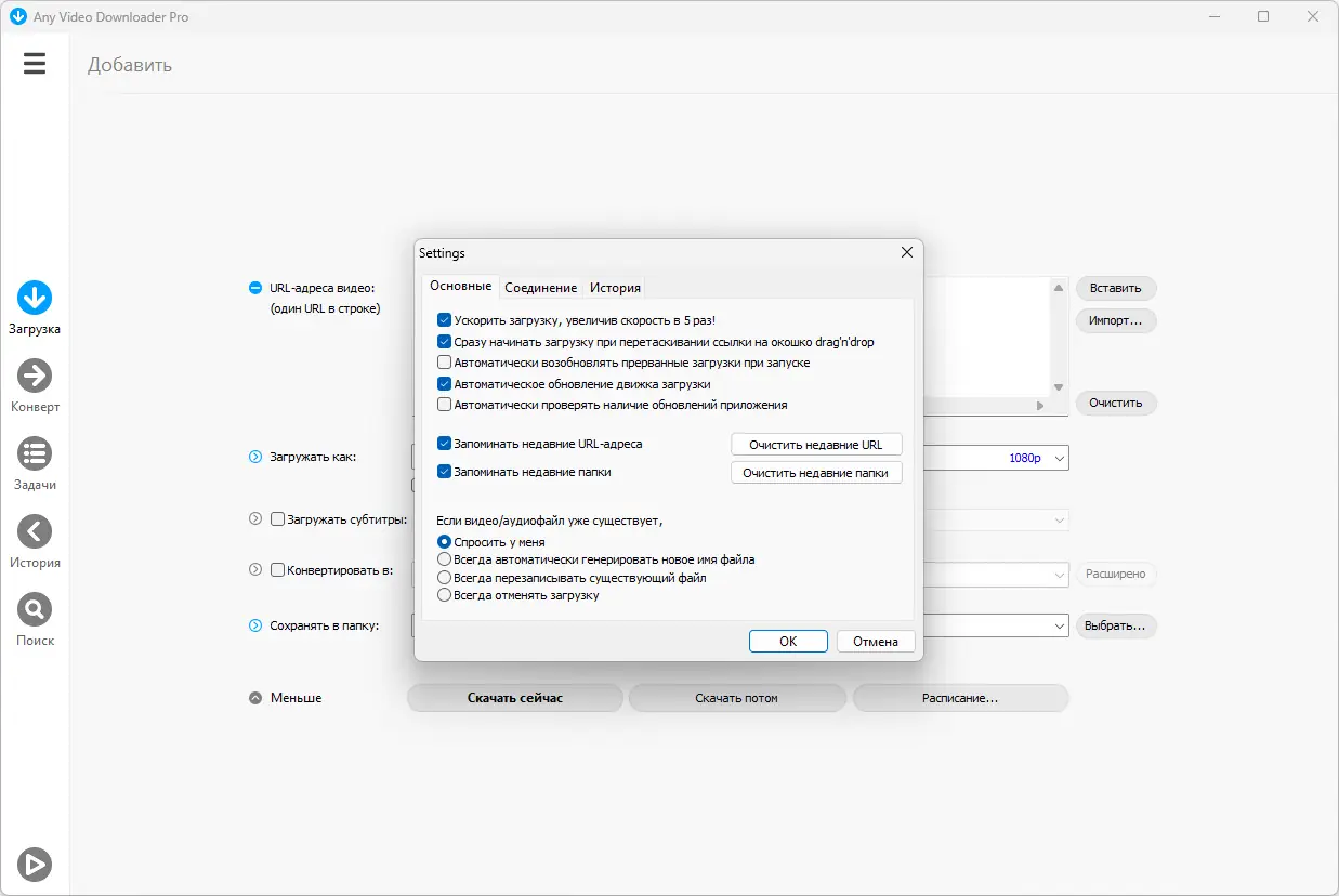 - Скачивание видео с YouTube и других сайтов обмена видео в разном качестве — 720p, 1080p, 2K, 4K, 5K, 8K и 3D-видео.