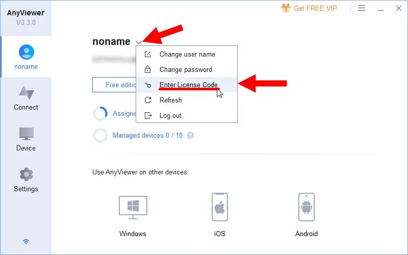 - В меню аккаунта введите лицензионный ключ для активации профессиональной версии.