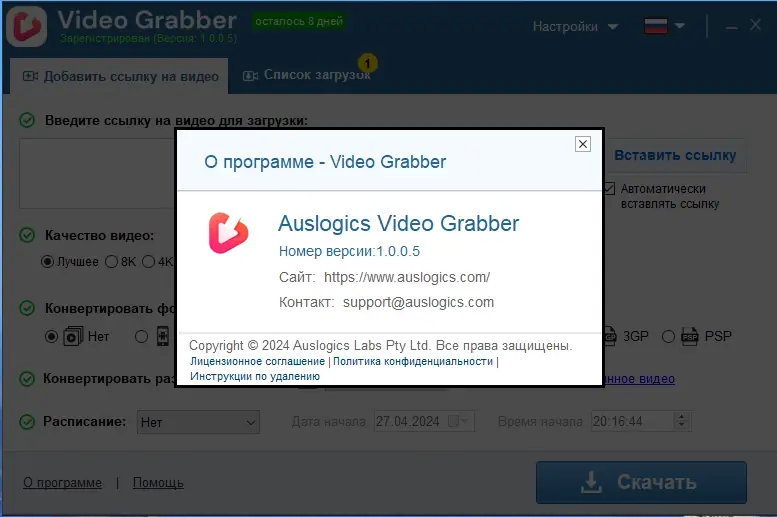 Auslogics Video Grabber — это быстрый и простой инструмент для загрузки и конвертирования видео с популярных сайтов в удобные форматы для мобильных устройств.