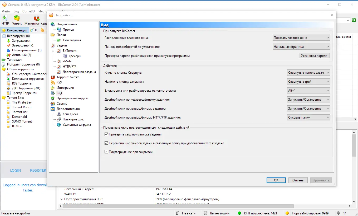 Обратите внимание, что при использовании прокси или при блокировке портов следует правильно настроить параметры соединения для беспрепятственной работы программы.