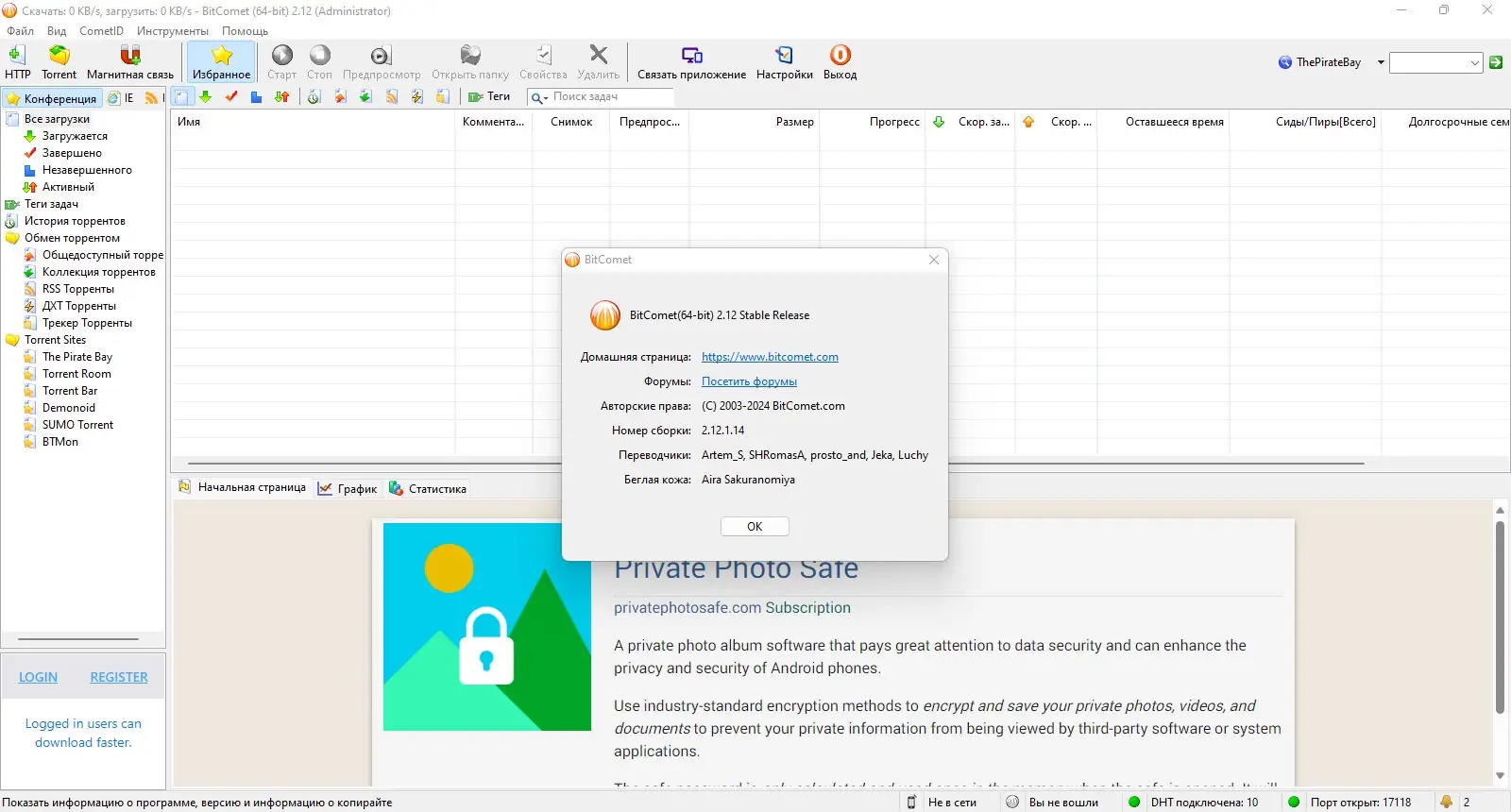 BitComet — это бесплатный, функциональный и удобный клиент для загрузки торрентов, созданный для работы на различных версиях Windows и поддерживающий работу с протоколами Bittorrent и Magnet.