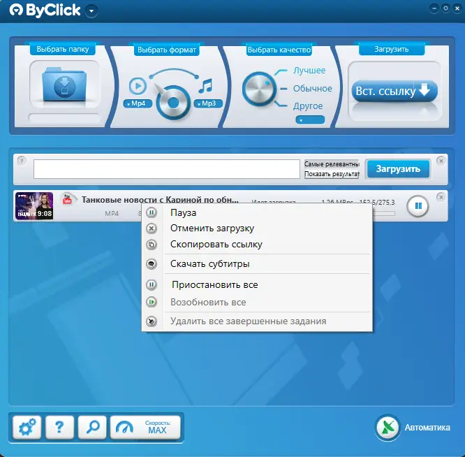 - Возможность скачивания видео в высоком качестве и различных форматах