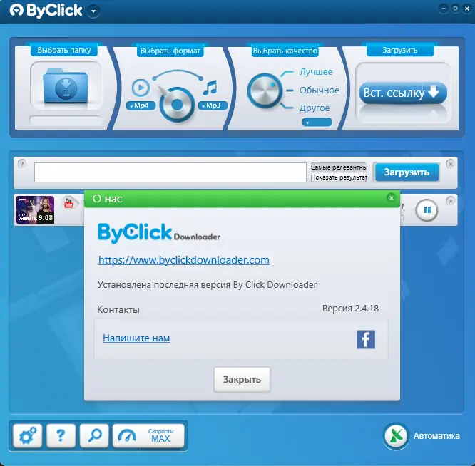 - Загрузка видео из YouTube, Facebook, Vimeo, Dailymotion и других сайтов