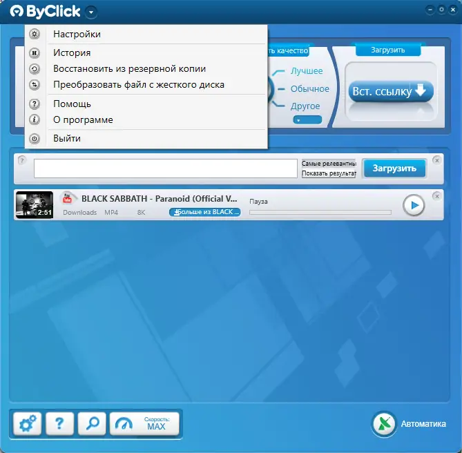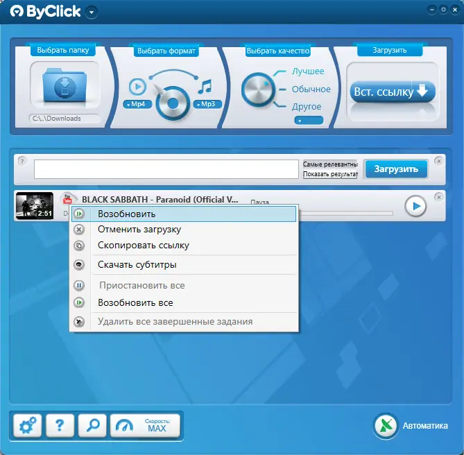 - Мульти-загрузки и скачивание целых плейлистов.