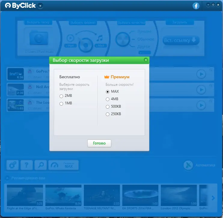 ByClick Downloader — это мощный и удобный загрузчик видео с популярных платформ, таких как YouTube, Facebook, Vimeo и других. Благодаря простому интерфейсу и минимальному набору действий, вы можете быстро сохранить интересующий видеоролик или аудиофайл в нужном формате и качестве. Программа поддерживает скачивание целых плейлистов, видео высокой четкости до 4K, а также возможность конвертации файлов в различные форматы для удобства использования на мобильных устройствах и компьютерах.