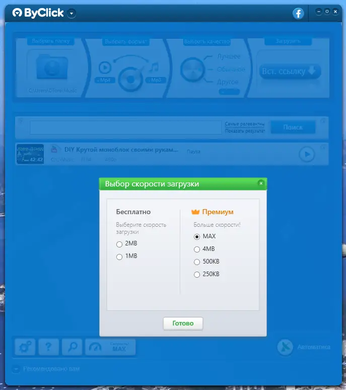 ByClick Downloader — это удобный и функциональный загрузчик видео с популярных сайтов, включая YouTube, Facebook, Vimeo и другие. Он идеально подходит для сохранения видеороликов высокого качества с минимальными усилиями, обеспечивая быструю работу и широкий набор настроек для комфортного скачивания.