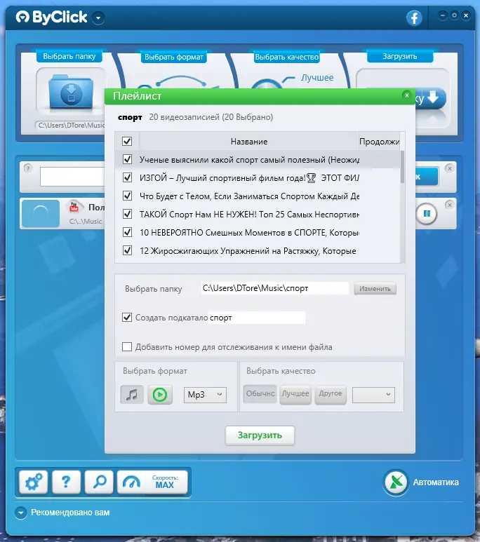 - Возможность скачивать целые плейлисты и все видеоролики с каналов.