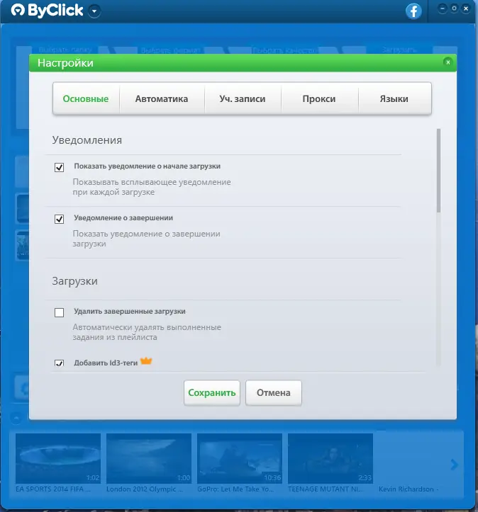 - Загрузка видеозаписей из YouTube, RuTube, OK.ru, Vimeo, Facebook и других сайтов