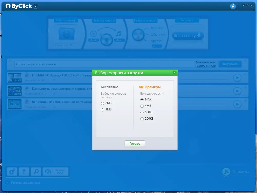 Приложение ByClick Downloader предназначено для быстрого и комфортного скачивания видео с YouTube, Facebook, Vimeo, Dailymotion и других видеохостингов. Для получения нужного ролика достаточно скопировать его URL-адрес, выбрать папку и формат скачивания, а затем нажать кнопку «Вставить URL». В течение нескольких секунд начнется загрузка файла. Удобство работы достигается благодаря автоматическому появлению уведомлений и поддержке большинства популярных браузеров, таких как Chrome, FireFox, IE и Edge. Кроме того, автоматическая всплывающая панель упрощает процесс скачивания из браузера, позволяя получать видеозаписи в один клик, без необходимости дополнительных настроек.