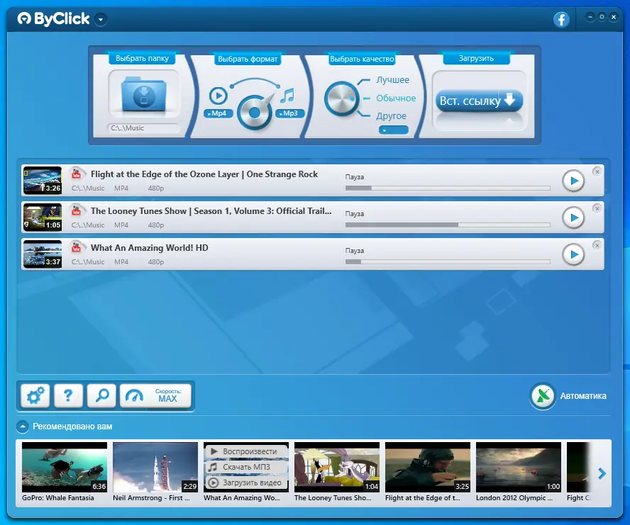 ByClick Downloader — удобная программа для скачивания видео с популярных сайтов, обеспечивающая поддержку множества форматов и высоких разрешений, а также возможность скачивания целых плейлистов и конвертации файлов.