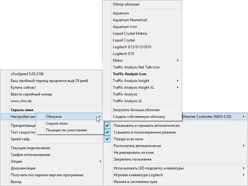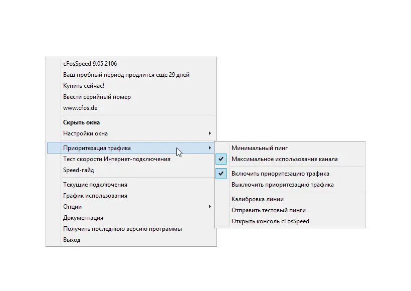 Улучшая работу сетевого соединения, cFosSpeed привязывается к существующим интернет-каналам и осуществляет приоритезацию трафика с помощью технологии Traffic Shaping. Это позволяет сохранить низкое время пинга, увеличить скорость передачи данных и устранить заторы в сети. Программа подходит для широкого спектра подключений: DSL, кабель, ISDN, мобильные сети (3G, 4G, UMTS), WiFi и другие. Интерфейс на русском языке делает управление простым и удобным, независимо от опыта пользователя.